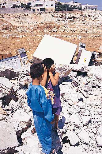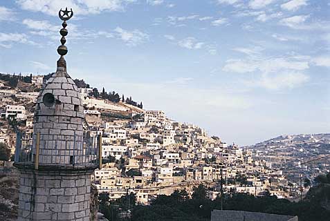 Under sitt besök vänder Ehud Olmert inte en enda gång blicken mot palestinierna som följer spektaklet från grannhusets tak. Trots alla tal om det "evigt odelbara och enade" Jerusalem, ser han sig uppenbart som borgmästare för enbart halva Jerusalems befolkning - den judiska.
