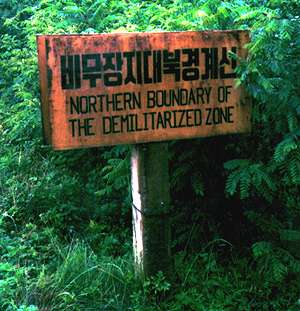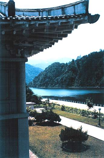 ![]() ![]() Infartsskylt vid den 38:e breddgraden | Det finns nästan ingen bebyggelse längs denna väg och överallt syns människor som bearbetar risfälten inför den skörd landet är beroende av, efter de senaste årens svält- och översvämningskatastrofer. Pyongyang blir i kontrast till denna landsbygd som en uppenbarelse, en modern stad framtrollad ur ett mycket lite mekaniserat jordbruk, där bara en och annan traktor synts till. Vi blev väl mottagna på Pyongyangs järnvägsstation och fick ett späckat program som höll oss sysselsatta hela veckan. Under vår vistelse hade vi förutom vår värd också en tolk och en chaufför med en minibuss att tillgå. De allra flesta av våra önskemål tillgodosågs. Vi fick se det mesta av det vi önskat få se under vår resa. |