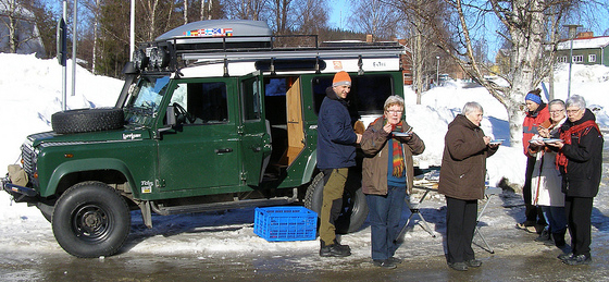Doroteabor får stöd av Ullrich och Kerstin Wisniewski som kom med en jeep lastad med ärtsoppa. Foto: Doroteaupproret.