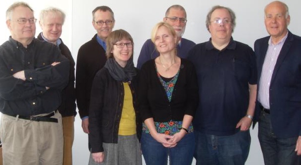 Del av den nyvalda styrelsen för Afghanistansolidaritet. Från vänster Claes Engelbrand, Franz Smidek, Stefan Lindgren, Clara Quarfood Lindberg, Eva Lind Söderling, Hasse Söderling, Klas Sandberg och Lars-Gunnar Liljestrand (Foto: Birgitta Karlberg)