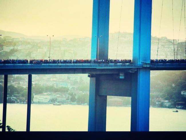 Yet they still march. Hundred of thousands join them. Couple of more thousand passed the Bosporus Bridge on foot to support the people of Taksim.