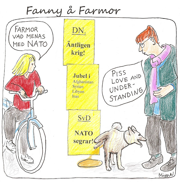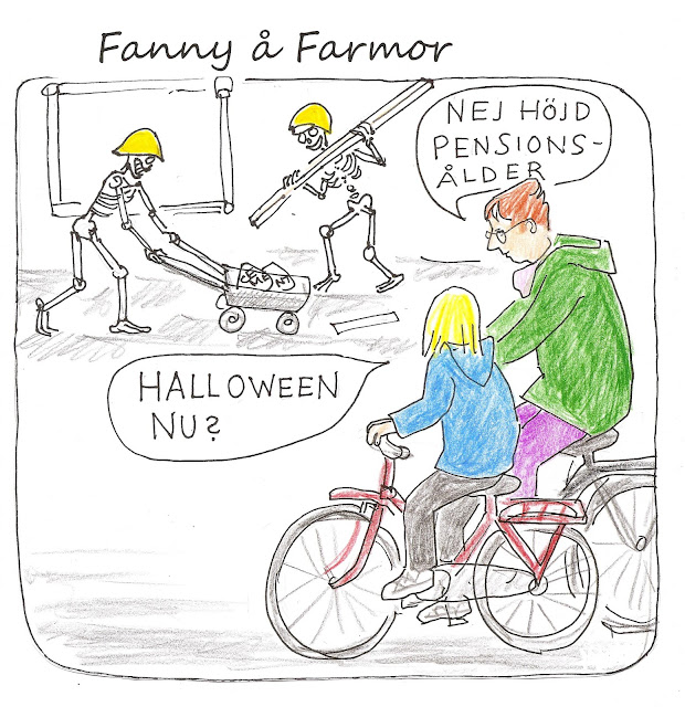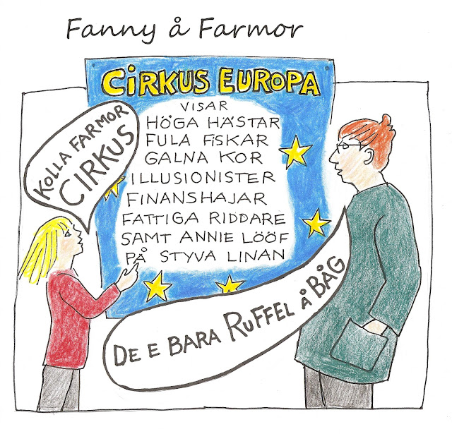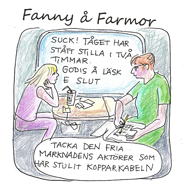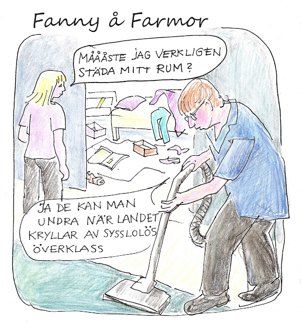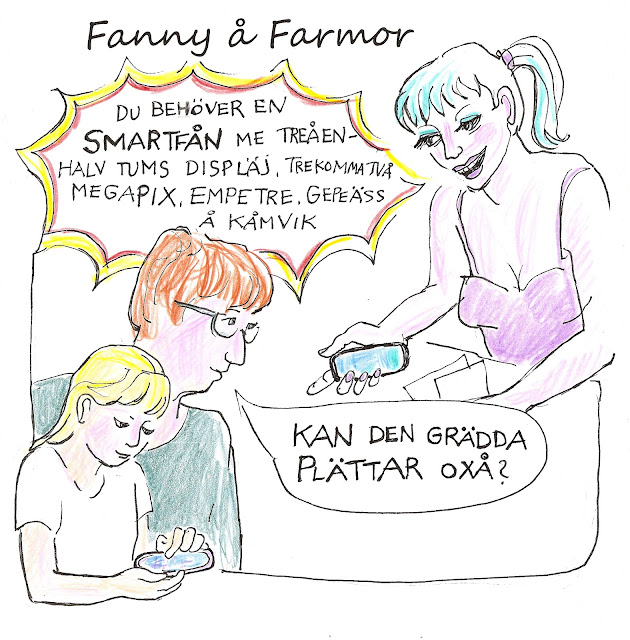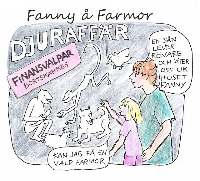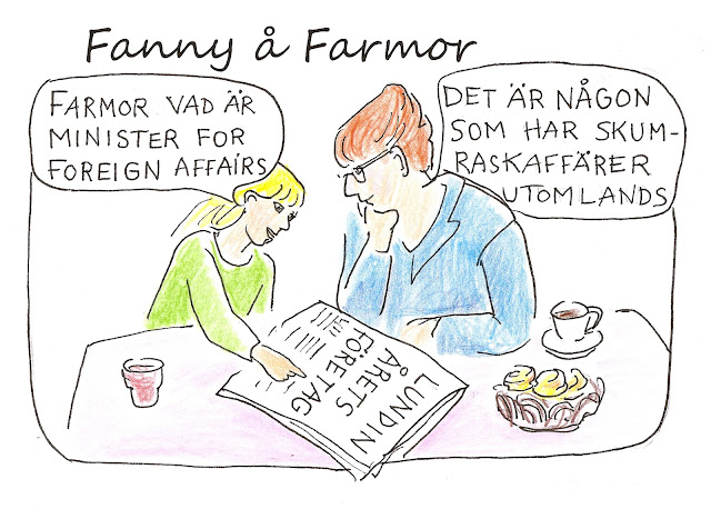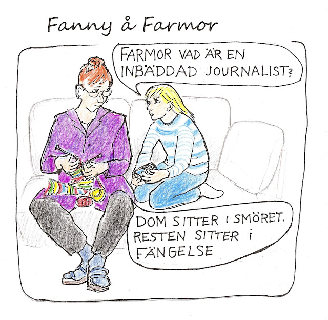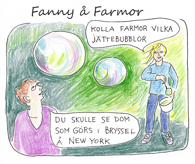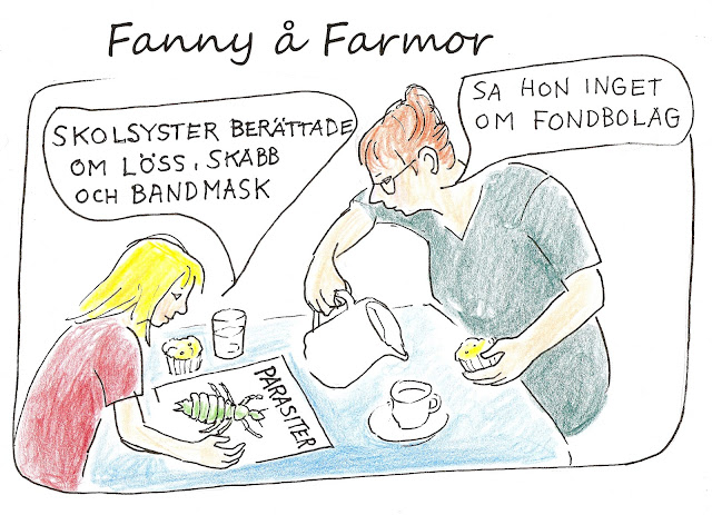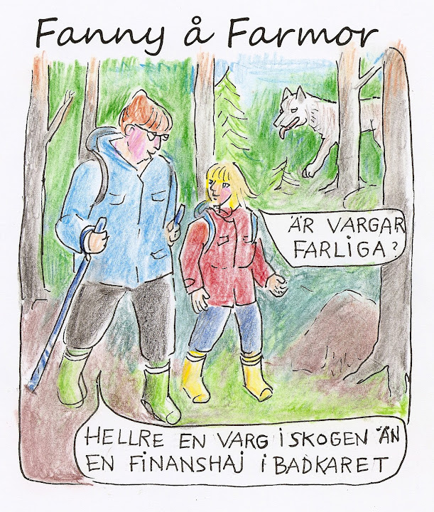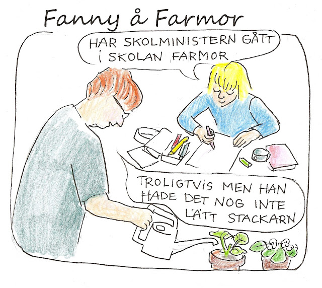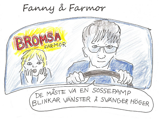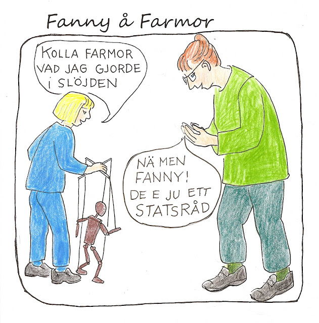 Serien Fanny å Farmor publiceras i FiBs pappersupplaga. Nu finns också flera av bilderna här på hemsidan. Kristina Eriksson fd teckningslärare tecknar och Hans-Magnus Meincke står för manus och idé.
