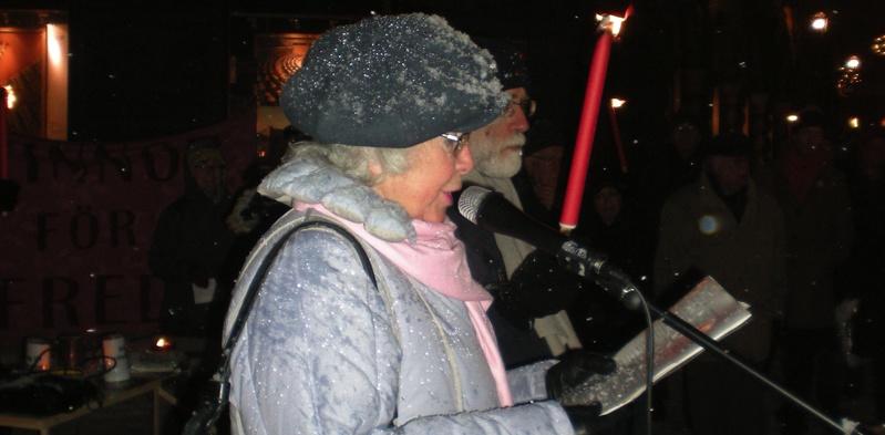 18 december på Mynttorget i Stockholm genomfördes en värdig protest mot fortsatt svenskt deltagande i Afghanistankriget. 50 personer trotsade snöfall och kyla och manifesterade med facklor och banderoller. En serie talare höll anföranden.