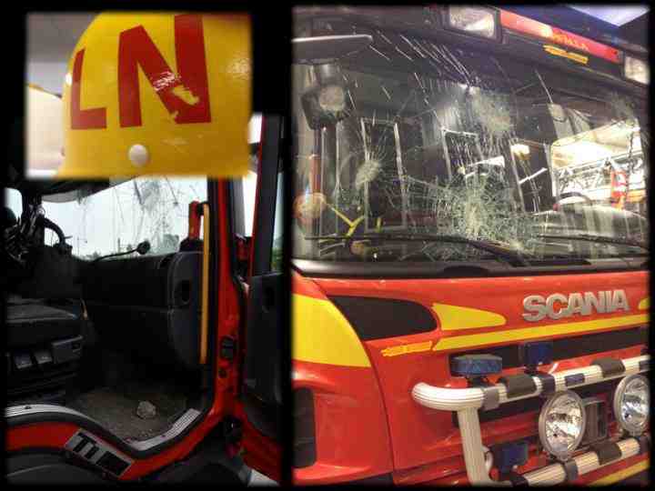 I natt kastade du stenar på oss! Tack och lov var det bara en av ungefär 20 stenar som gick igenom rutan. Som tur var hade jag min hjälm på huvudet så stenen lämnade bara ett stort ärr i min hjälm. Som tur var träffade du inte vår chaufför, han kunde köra oss där ifrån och han kunde lämna sin son på dagis i morse. Själv fick jag krama om min flickvän när jag kom hem, overklig omfamning! Som tur var skadades ingen annan fysiskt av de stenar du kastade på oss. Men du har påverkat mitt och mina vänners yrkesliv för all framtid!