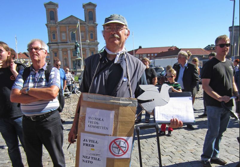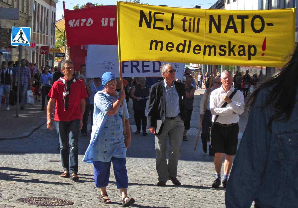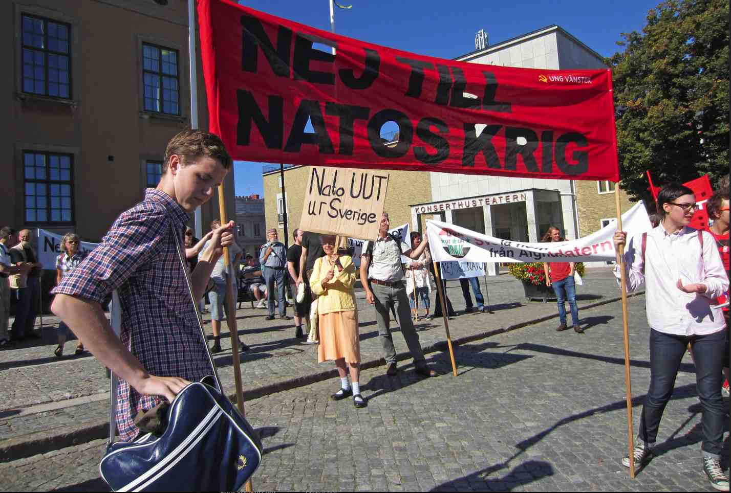 Genom överenskommelser över folkets huvuden har Sverige förts allt närmare den USA-ledda militäralliansen Nato. Sverige har ställt upp i Natoledda krig som i Afghanistan och Libyen, samövar med Nato och upplåter territorium för utprovning av nya vapen. Försvarsministern har nyligen ansökt om att Sverige ska delta i Natos snabbinsatsstyrka. Steget ska göras kort till medlemskap. Ingen stor offentlig debatt om omläggningen av försvars- och utrikespolitiken har skett och den saknar därför demokratisk förankring. Alliansfriheten har tjänat folket väl, bland annat genom att hålla Sverige utanför två världskrig. Därför finns en stor opinion i alla läger mot närmandet till Nato.