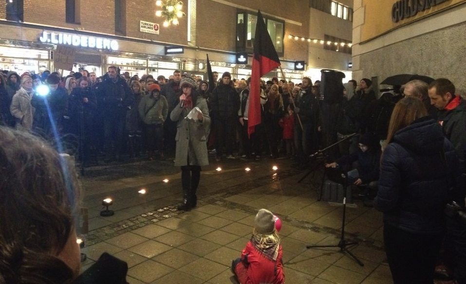 I somras smsade en kompis mig om att ta en fika på stan. Hon sa samtidigt att det var nazister på stan och frågade om någon motdemonstration var arrangerad. Det visste jag inte, men fika är ju alltid nice. Mormor och morfar råkade komma förbi just då och kunde passa våra tre barn. Jag och min sambo tog därför chansen att gå ner på stan för en vuxenfika och för att kolla upp vad min kompis pratade om. När vi kom ner till gågatan stod de där. Bredbenta och svartklädda med sköldar och flaggor på långa pinnar (dessa visade sig senare vara pefrekta som tillhyggen).