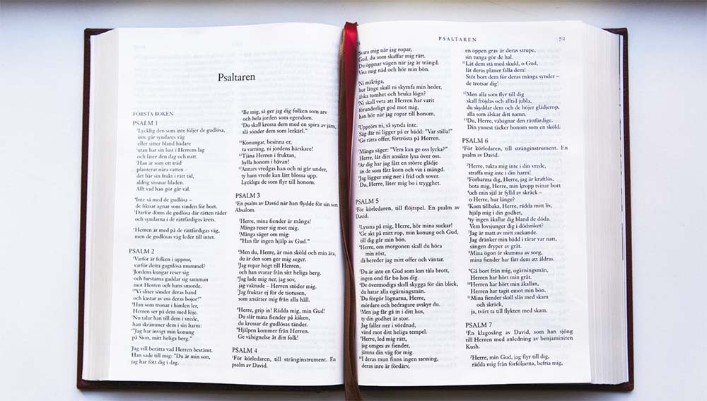 NÄR SOLEN LYSER som vackrast över Järlasjön och de flesta av hustru Marions smålandskringlor är uppätna (av Folket i Bild) reser sig Thage Peterson upp och visar på en bokhylla, full med religiös litteratur. I juni avlade han en teologie kandidatexamen vid Ersta Sköndals högskola. Kandidaten tar fram en bok där han säger sig att hittat sitt andra partiprogram, vid sidan av det socialdemokratiska. Det är Bibeln och kandidaten slår upp Psaltaren 72.