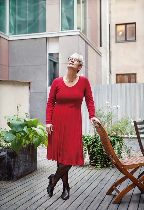 Själv är hon hyresgäst i ett radhus i Tyresö, där hon stortrivs. Men när hon ser sig omkring i området blir hon oroad och undrar vilka som ska ha råd att bo där i framtiden.
