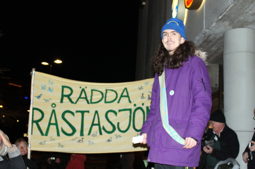 Leo Rudberg, 17 år, skriver om sitt första demonstrationstal på Råstasjödemonstrationen i Solna: - Undertecknad talar för 250 människor om Råstasjön. Ja, detta är (typ) mitt livs första bild på mig själv på min blogg – jag tyckte det var passande, nu när jag arrangerat mitt livs första demonstration! Foto: Sophie Woolley.