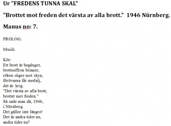 Efter en välbehövlig fikapaus fortsatta mötet med Fredens tunna skal, ett musikprogram om Sverige i krig och fred, där musik, sång och text framfördes av musikgruppen Lycklig Ungdom (Malin Loman och Elinor Karlsson) och skådespelaren Leif Stålhammer. För manus och regi står regissören Arne Andersson. Fredens tunna skal handlar om Sveriges nya roll i världspolitiken. Sverige har i dag en yrkesarmé som deltar i krigsinsatser under Nato-befäl.