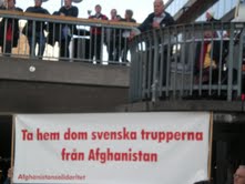 Det har mig veterligt varit rätt få på samtliga demonstrationer som förekommit i fråga om att de svenska trupperna bör lämna Afghanistan. Förra året genmfördes demonstrationen med facklor och en vardagkväll. Något fler deltagare då bedömer jag. Fackeltåget gick från Slussen till Sergels Torg.