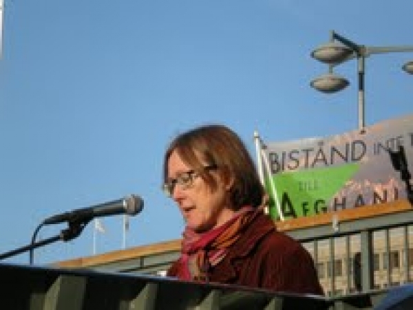 Denna appell höll Clara Lindberg på Sergels Torg i Stockholm 9/10, 2010 vid den demonstration som avslutade årets Afghnistanvecka under parollen "Ta hem trupperna – öka biståndet!"