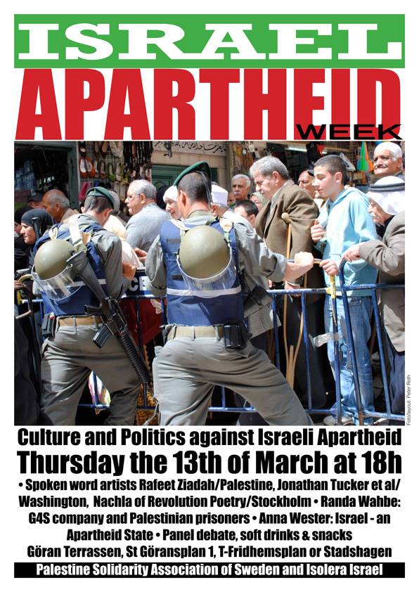 Bjud gärna in dina vänner via Facebook: Israel Apartheid Week Stockhollm