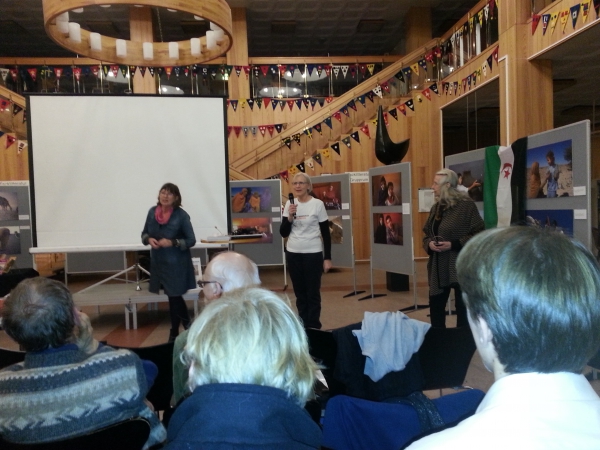 Det var många härliga och rörande bevis på att solidariteten lever när Anita Tärneborg och Carin Palmcrantz berättade om sin resa till lägren med västsahariska flyktingar i Algeriet. Startpaket till förlossningsavdelningen från S-kvinnoklubben i Avesta. En hel buss för att möjliggöra för sahariska flyktingbarn att ta sig till skolan. Den sahariska kvinnan har en stark ställning i lägen, mycket tack vare Polisarios långa och intränga arbete. Lägren är välorganiserade och 90 % är läs- och skrivkunniga. Särskilt kvinnorna satsar på att utbilda sig.
