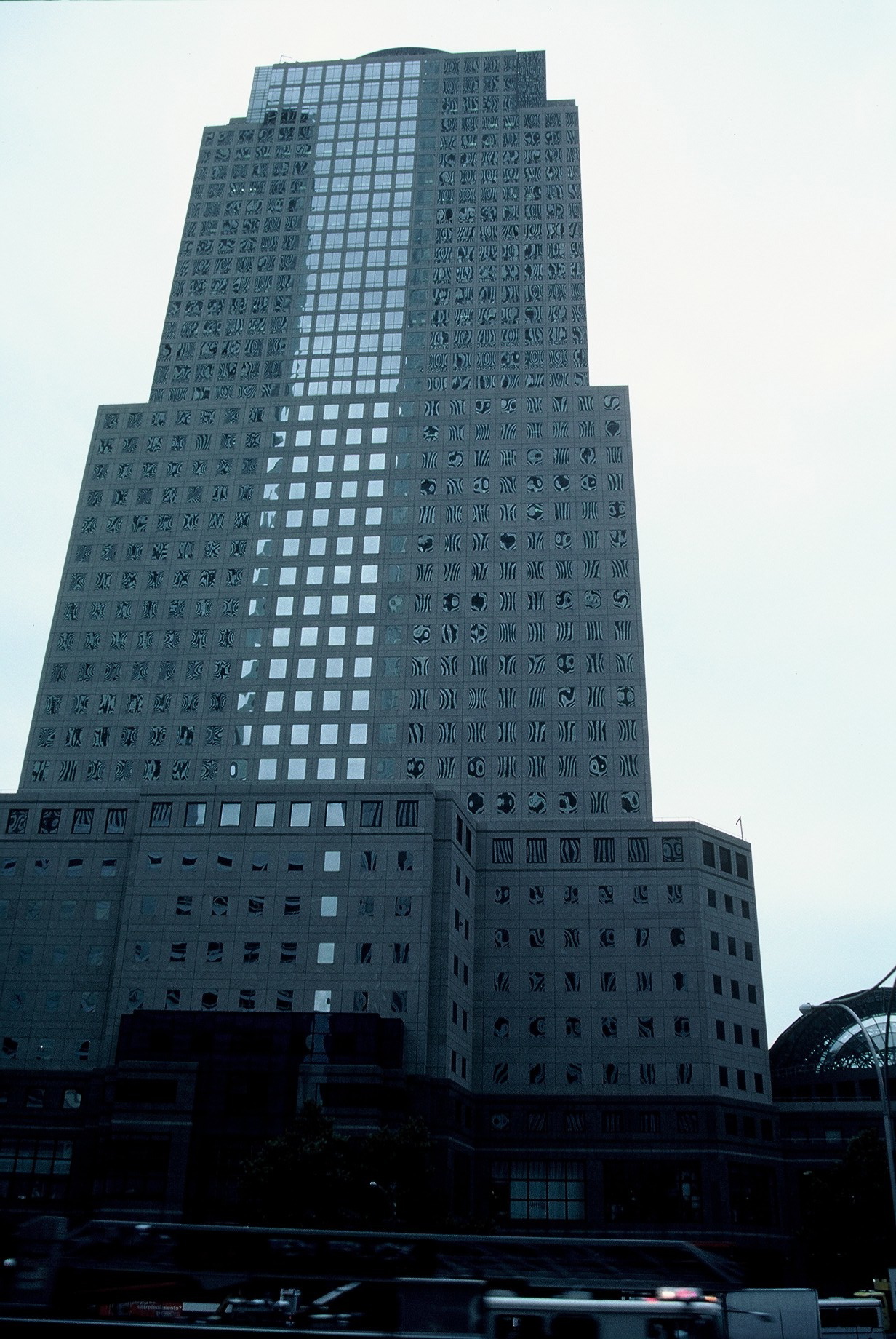 För att jag ska förstå att det hela är en skyskrapa vid en gata i verkligheten tar jag också ett tredje foto där även trafiken syns. År 1999 är det långt före digital teknik och jag vill inte slösa med kamerafilm. Vi har just kommit till Staden som aldrig sover och det finns annat intressant att fotografera.