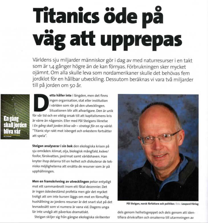 Pål Steigan ger i sin nyutkomna bok en bild av dagens olika kriser baserad på statistik och fakta. Han kopplar samman den ekonomiska krisen med miljökrisen.