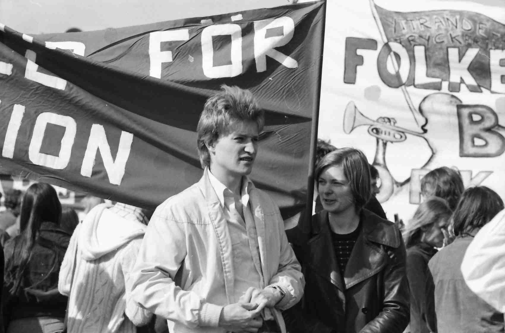 En aning yngre Bjarne Isacson demonstrerar, troligen en 1 maj.