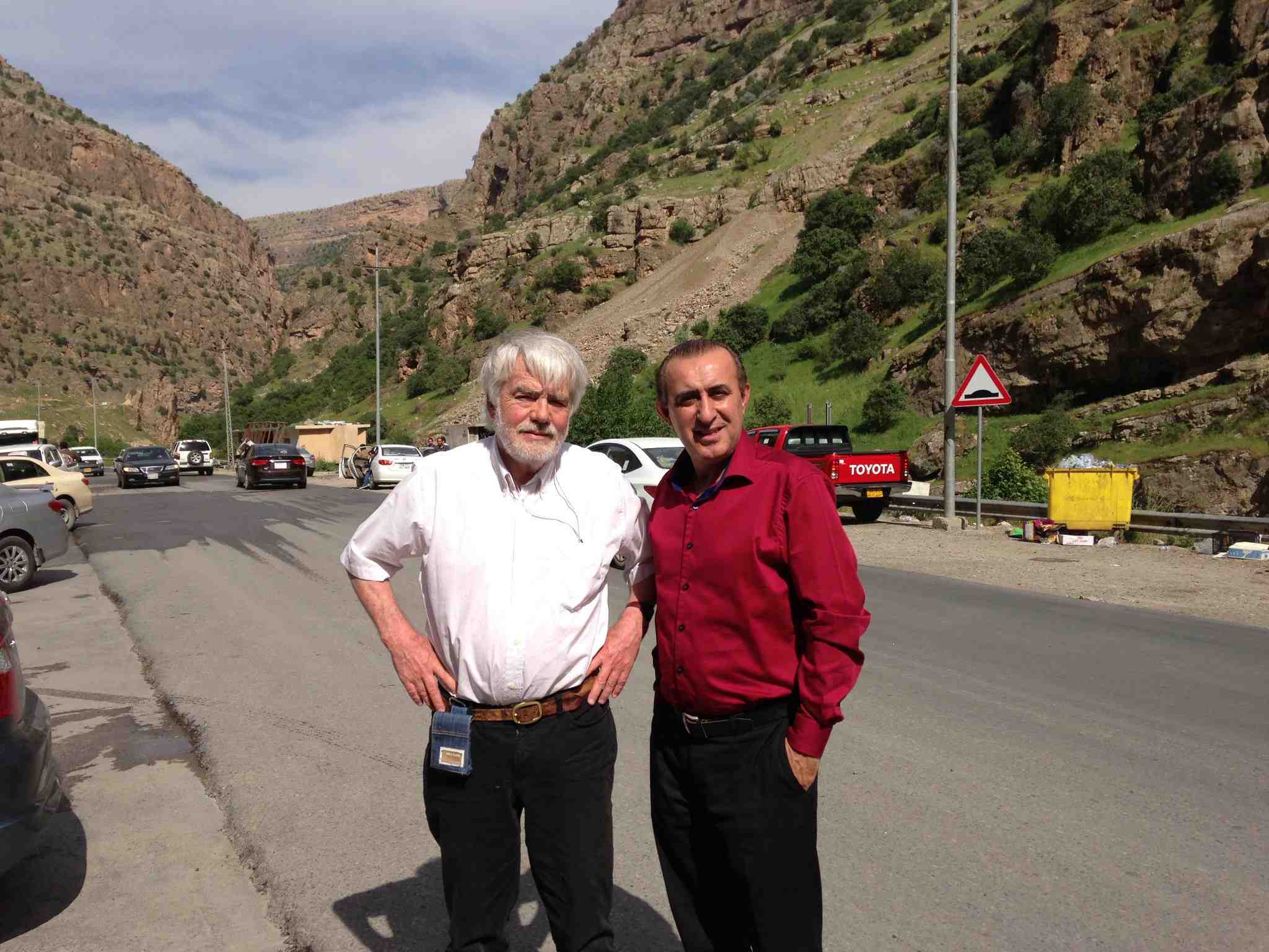 Per Gharton (MP) och Jabar Amin (MP) utanför Erbil på väg till mötet med PKKs ledning.
